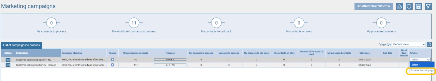 - Unavailable: the contact will no longer be proposed in this campaign. You must provide a reason for the unreachability.