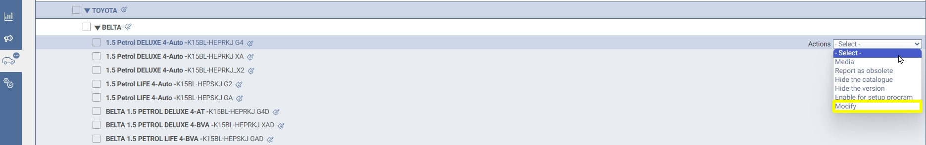 Vehicle versions are editable even if there have been previous transactions or are currently in stock. Only the manufacturer’s code cannot be modified.