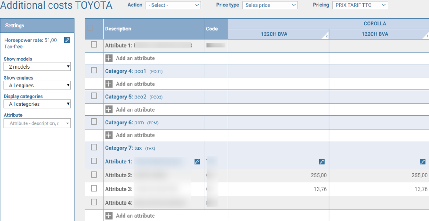 You can add costs to the existing categories and enter the corresponding DMS code. Then, for each trim, you can enter a price by double clicking on the pencil. Remember to choose the correct pricing and price type at the top before saving.