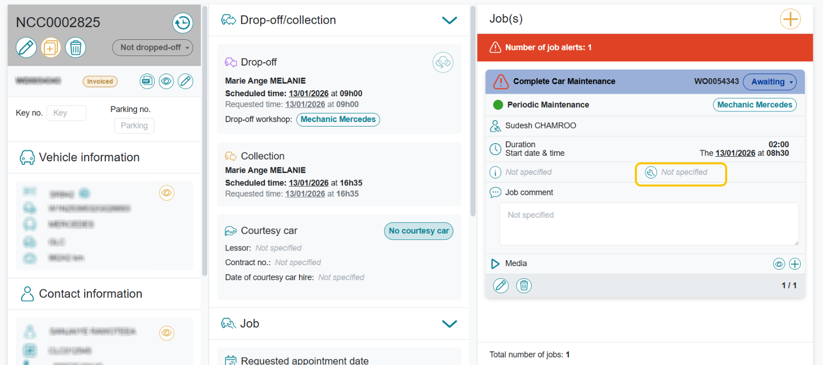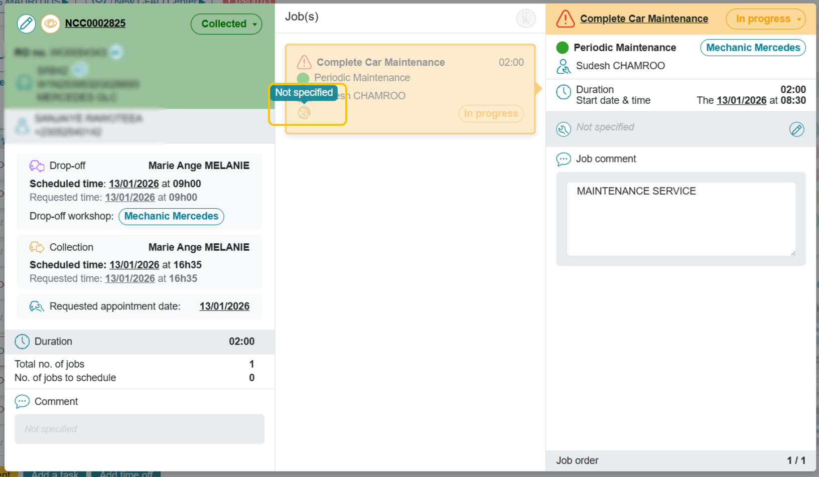 The availability of parts can be entered in the job folder.
