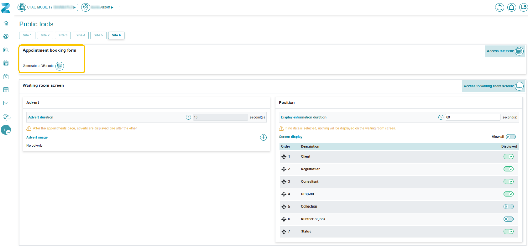 In the “Appointment Booking Form” section, click on the icon representing a QR code.