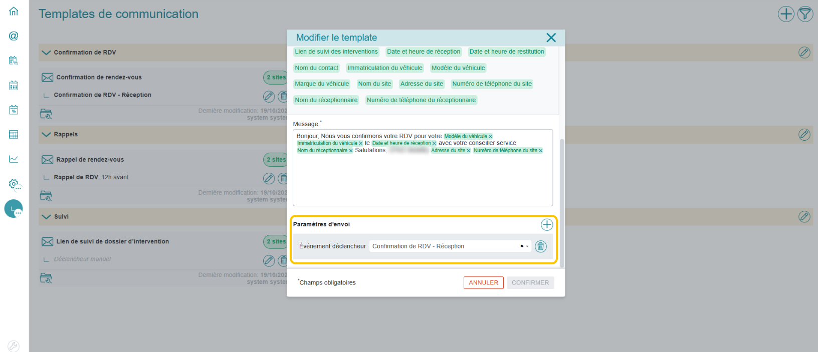 Par exemple, si les interventions sur le véhicule du client sont terminées alors un email automatique lui est envoyé pour le prévenir qu'il peut venir récupérer son véhicule.