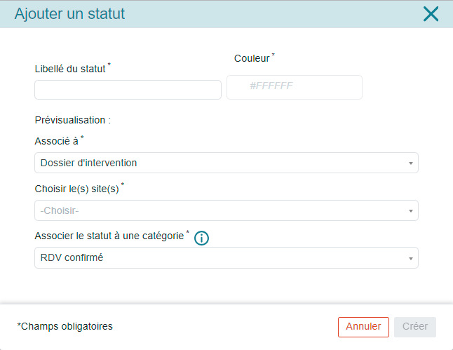 Associez ce nouveau statut soit aux dossiers d'intervention (pour qu'il apparaisse dans leur liste de statuts).