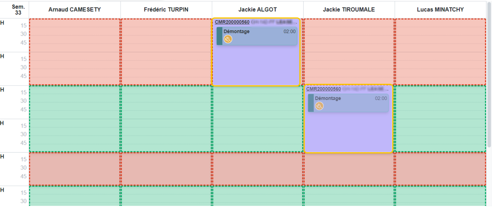 Vous pouvez ensuite faire glisser la seconde partie de l'intervention sur un autre technicien :