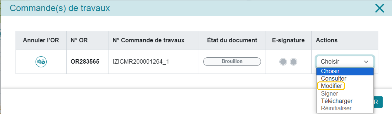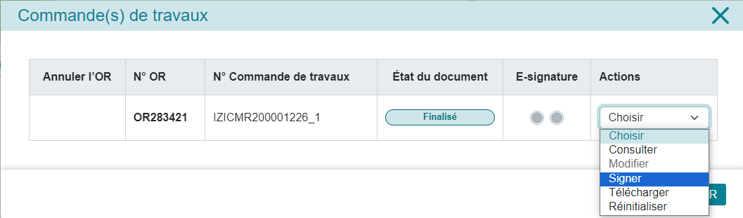 Vous allez ensuite pouvoir modifier la commande de travaux pour signature :
