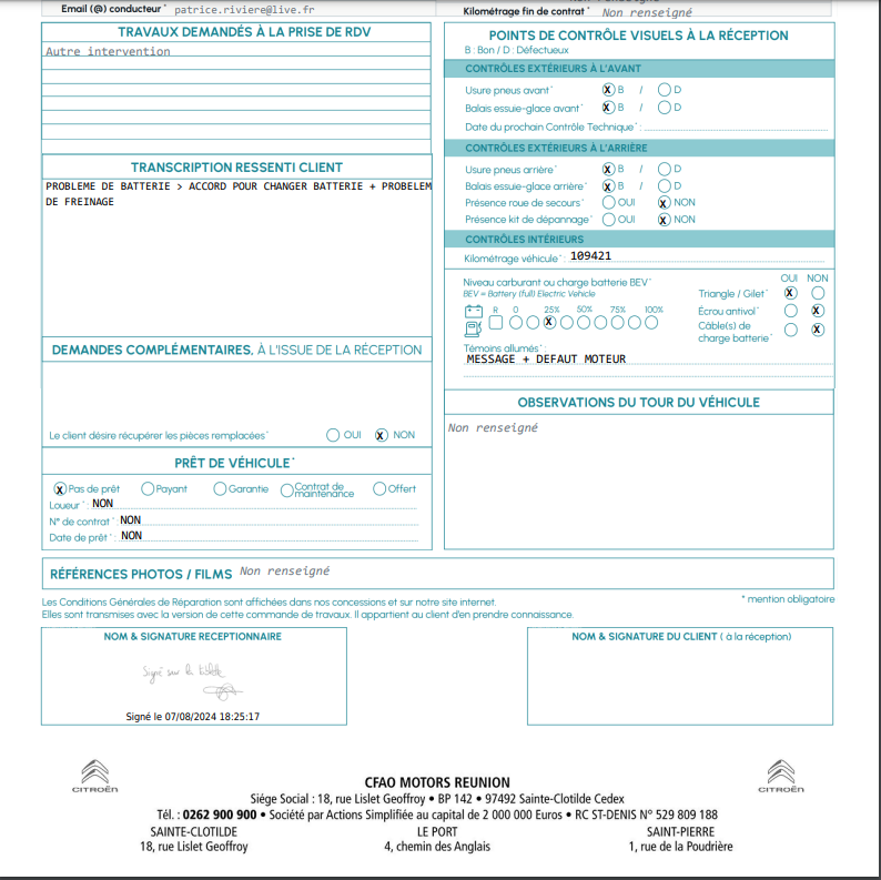 Signez en tant que réceptionnaire et faites signer votre client :