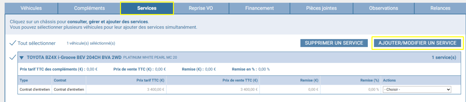 Lors de la création d'une proforma ou d'un bon de commande, vous pouvez ajouter des services sur le document.